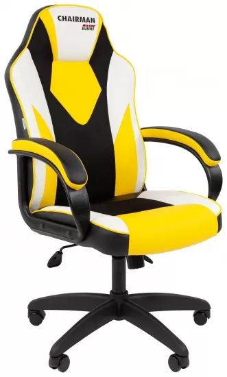CHAIRMAN GAME 15 — кресло для геймеров в среднем ценовом сегменте. В модели сочетается хорошая функциональность и продуманная конструкция. Особая конфигурация спинки поддерживает в правильном положении позвоночник, а мягкое сиденье с рельефными вставками обеспечивает комфортную посадку. Для дополнительных удобств пользователей есть регулируемые подлокотники и большой подголовник. Модель выдерживает нагрузку до 120 кг. В качестве обивки производитель использует экокожу. Это легкий и прочный материал, который мало в чем уступает натуральной коже. Доступны четыре расцветки, которые представляют собой комбинацию основного черного фона с цветными вставками красного, желтого, серого и голубого цвета.