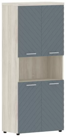 Шкаф с глухими средними и малыми дверьми- Дуб Бофорд/Серо-голубой